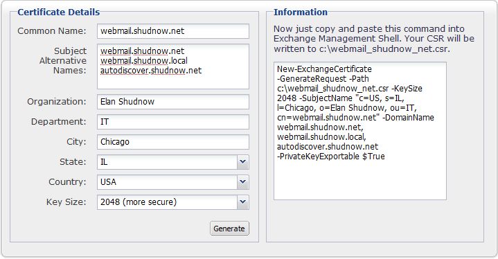The majority of people will use the autodiscover.shudnow.net method.  Taking a close look at the URLs, we will utilize https.  This means that we will need the autodiscover.shudnow.net name in our certificate.  To have multiple names in our certificate, we will need a Unified Communications Certificate that is provided by various vendors.  My favorite certificate vendors are Entrust followed by Digicert.