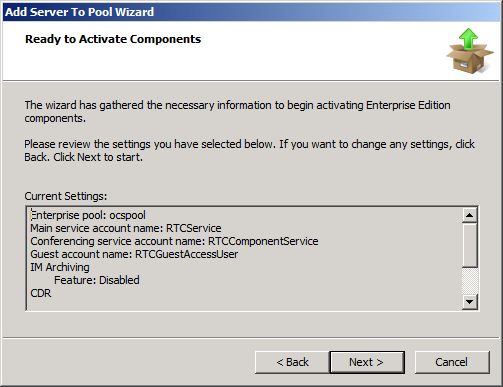 We are ready to Activate our Components. You can review your Current Settings. When satisfied, Click Next to Continue.
