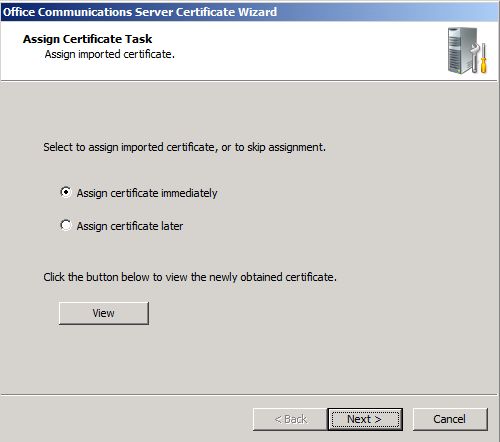 Note: The reason why you want to assign the certificate to IIS is because the Address Book is a part of the web components server. Remember setting up the share for this? Because clients access this Address Book via SSL and the ABS folder within IIS is set to use SSL, we need to make sure IIS uses a certificate to grant SSL access to ABS. If you don’t, clients won’t be able to access the ABS and will get an ABS error when using Communicator.