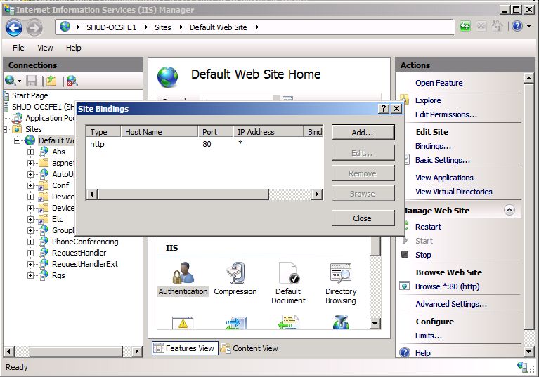 hi, do you have a setting for IIS Authentication when installing OCS 2007 R2 on windows 2008 ? My installation is behaving funny in that the Integrated Authentication to IIS Website of the OCS web components isn’t working, that is I can log in from a client by supplying the username and password, but I can’t go the web components site when Browsing from within the server itself, and it gives validation errors when i validate web components server