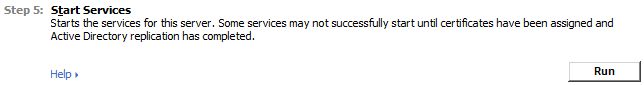 We are now on Step 5 which is to Start Services. Click Run to start the OCS Services. I will not provide screenshots of this process as it is extremely straightforward.