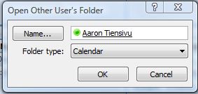 So let’s say we have a shared mailbox called Aaron Tiensivu. Yes, I’m sure many of you recognize his name from his blog here. He’s a coworker of mine so I’m using him as an example. I am going to open his calendar from my Outlook client and try to modify his calendar. In order to do this, we need the following permissions: