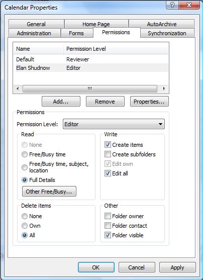 The Problem: The problem though, is that when you try to create an calendar item, you hear an error beep but no error shows up and you aren’t able to create/modify/etc. to the shared mailbox’s calendar. Turning up Outlook Logging doesn’t reveal any pertinent information. I did find two workarounds though which I don’t really care for and a third workaround which may or may not be considered a workaround to some.