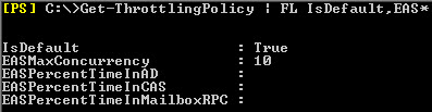 Get-ThrottlingPolicy | FL IsDefault,EAS*