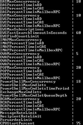 It is important to note the CPUStartPercent parameter. It is only when Exchange reaches this CPU utilization that the policy will be enforced. If an Exchange Server is adequately sized, your user’s should very rarely ever get throttled. But throttling is good to have in the situation where your Exchange Server does encounter high CPU utilization in the circumstances noted at the beginning of this article, intentional high utilization and unintentional high utilization which the throttling policy will ensure that users are utilizing your Exchange resources proportionality.