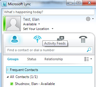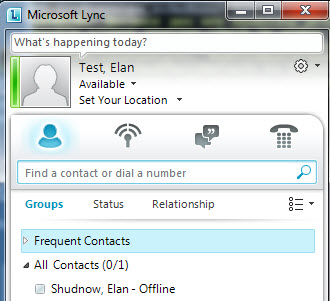 On the Elan Test account, I have Elan Shudnow added to the contact list.  But Elan Shudnow is showing up as Offline.  In fact, Elan Shudnow is actually set to Available.  Elan Shudnow just doesn’t have Elan Test as a contact.